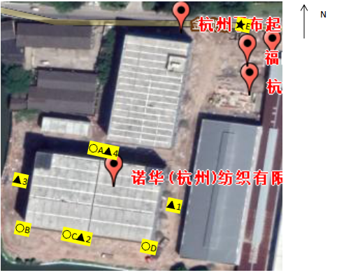 注:○為無組織測(cè)點(diǎn),★為廢水測(cè)點(diǎn),▲為廠界噪聲測(cè)點(diǎn)。 |